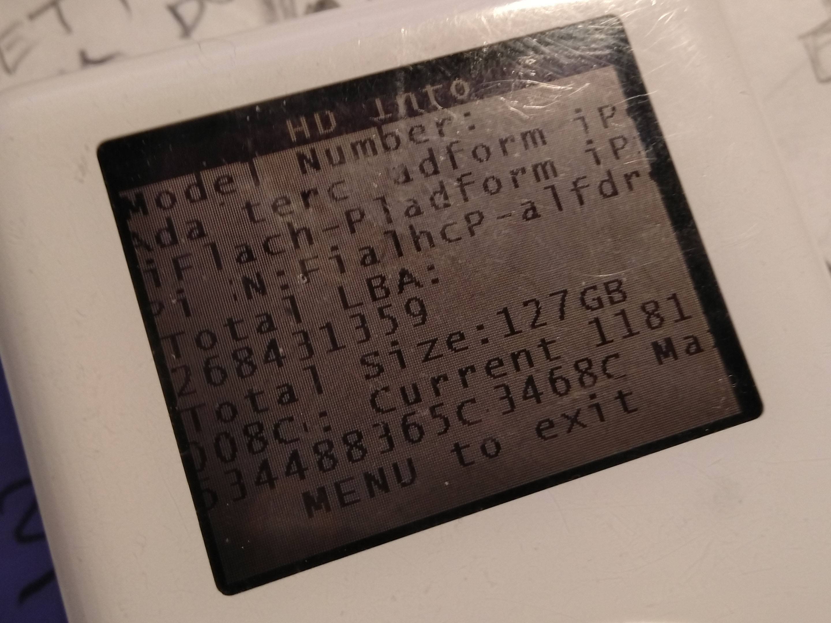 Finally, If I don’t restore it with iTunes but just format it with AOMEII to fat32 and a full 1.6Tb partition, and _then_ rockbox it, it sort-of works with the full capacity, but because it then doesn’t have the original firmware on it allowing dual-boot mode, there’s no good way to sync to it (as synching in rockbox mode is known to cause disk errors because rockbox’s ATA driver doesn’t play well with the iFlash).